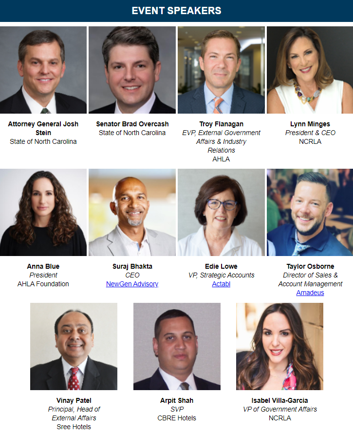You’re invited to the 2023 North Carolina Hotel Conference in Charlotte! Join fellow hoteliers from across North Carolina for an afternoon of networking and learning about the very latest policy issues impacting your hotel.