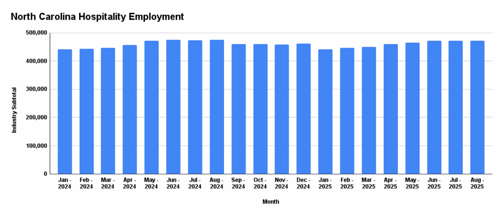 Detailed employment figures in North Carolina’s hospitality industry, courtesy of the North Carolina Department of Commerce.