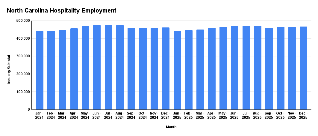 Detailed employment figures in North Carolina’s hospitality industry, courtesy of the North Carolina Department of Commerce.